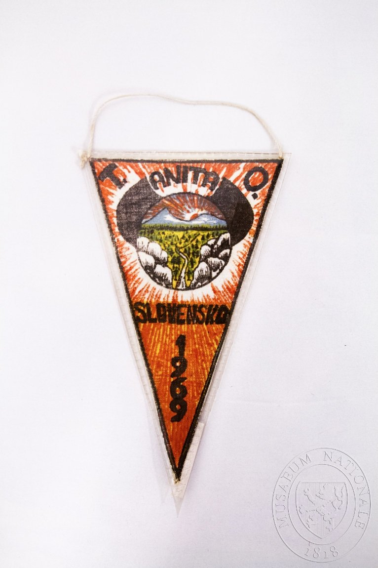 Vlajka trojúhelníkového tvaru je z textilu obaleného plastem. Materiály jsou k sobě přišity nití. Na látce podél hran jsou černou barvou ohraničeny okraje. Nahoře se nachází provázek pro zavěšení a nápis "T. O. ANITA". Pod nápisem je kruh s černými rohy, v němž je zobrazena barevná krajina se sluncem, horami, lesem a skálami. Níže je černý nápis "SLOVENSKO" a svisle vyobrazený rok "1969". Pozadí tvoří oranžové proužky připomínající paprsky. Na druhé straně je na žlutém poli vyobrazeno týpí, v horní části na pozadí je bílý kruh s modrými rohy. Pod týpí se nachází zelená plocha, na níž je bílý nápis "CAMP" a žluté číslo "2".
