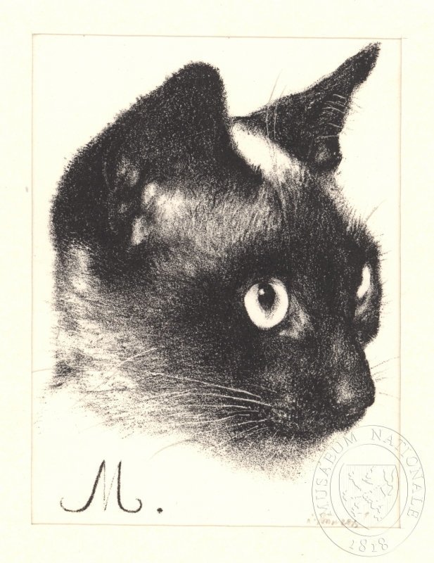 JIŘINCOVÁ, LUDMILA Hlava siamské kočky Mišky, písmeno M. Grafický list pro Elišku Rybičkovou.