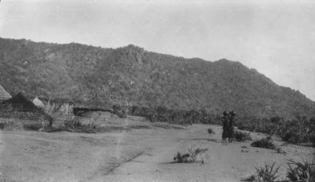 Dvě ženy s nádobami na vodu na hlavách na okraji vesnice