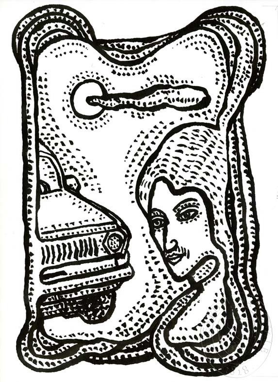 HOŘÁNEK, JAROSLAV /Žena a automobil/ Ilustrace. Tokarevová, V.: Prostě volný večer. In: Plná náruč naděje. Nevydáno, připravováno pro Albatros, pravděpodobně pro edici Veronika.