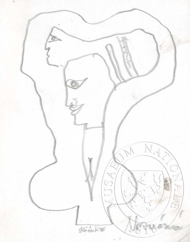 HOŘÁNEK, JAROSLAV Neznámá. /Dvojportrét/ Studijní kresba.