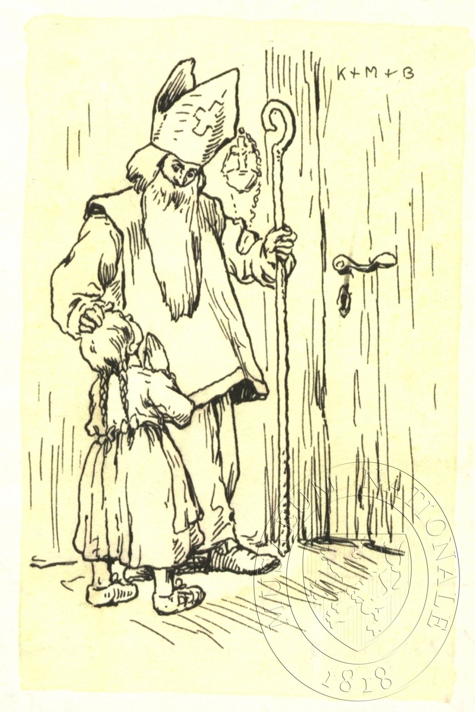 KAŠPAR, ADOLF /Mikulášská nadílka/ Ilustrace. Grossmannová-Brodská, Ludmila: Mrzák. In: Methoděj, zábavně-poučný kalendář na obyčejný rok [1902]. Olomouc: R. Promberger, 1902.