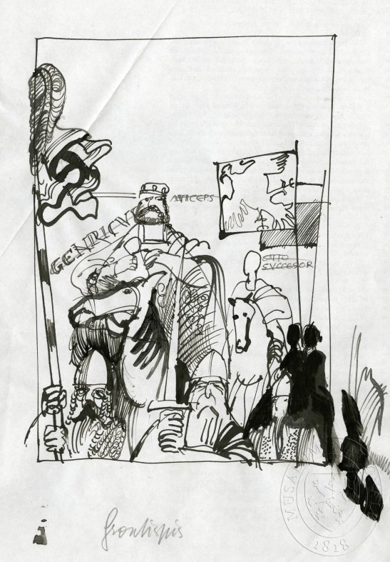 KUDĚLKA, MICHAL /Král Jindřich Ptáčník se synem Otou na koních/ Studie k úvodní ilustraci k 1. dílu knihy (Hledání cesty). Štorch, Eduard: Meč proti meči. Praha : Olympia, 2001.