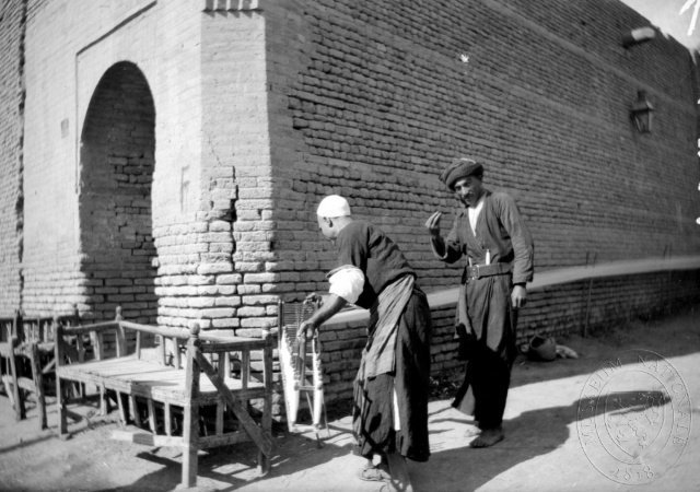 Řemeslníci na ulici, Bagdád, čb film 6 x 9 cm.