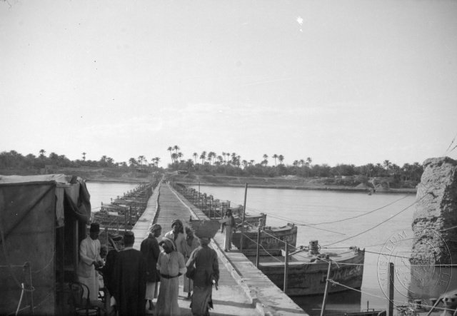Pontonový most přes Tigris, Bagdád, čb film 6 x 9 cm.