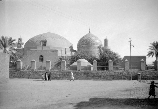 Celkový pohled na mešitu Šejk Abdul Khader (Chadir), Bagdád, čb film 6 x 9 cm.