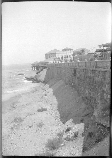 Pohled na nábřeží s kavárnami, Bejrút, čb film 6 x 9 cm.