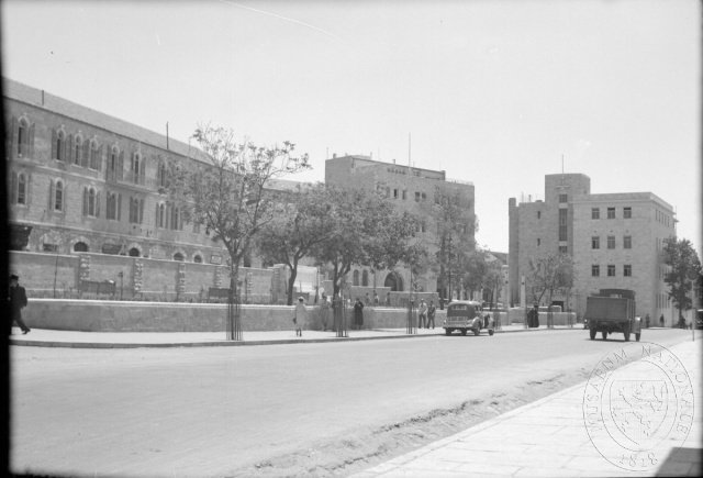 Nové domy v židovské části Jeruzaléma, čb film 6 x 9 cm.