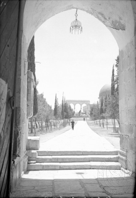 Vstup do Omarovy mešity, Jeruzalém, čb film 6 x 9 cm.