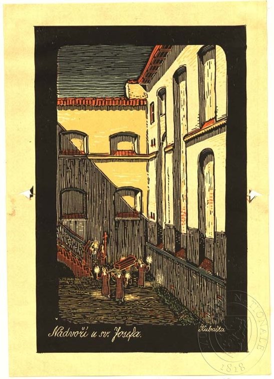 KUBAŠTA, VOJTĚCH /Nádvoří u sv. Josefa v Praze/ Ilustrace. Novotný, Antonín: Pražské Karmelitky. Praha : Vladimír Žikeš, 1941.