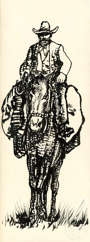 HOŘÁNEK, JAROSLAV /Zálesák na koni s nákladem/ Studie k ilustraci. Janka, O.: Amulet Siouxů. Praha: Albatros, 1987. Edice Karavana.