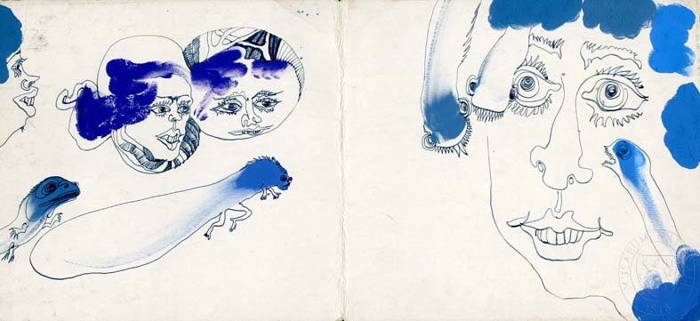 HOŘÁNEK, JAROSLAV /Obličeje, přízraky - dokreslované barevné skvrny/ Studijní kresby.