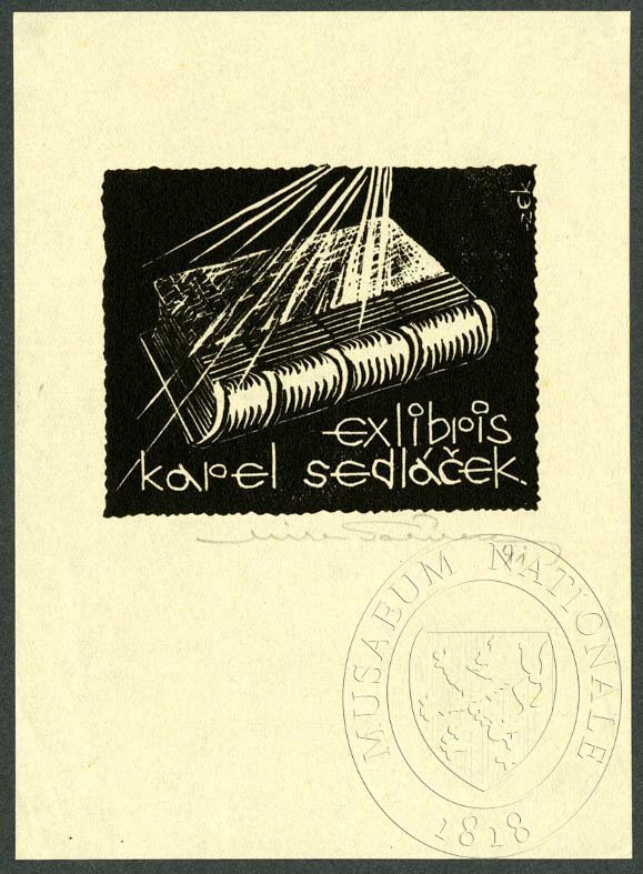 Exlibris. Ozářená kniha. EXLIBRIS KAREL SEDLÁČEK.